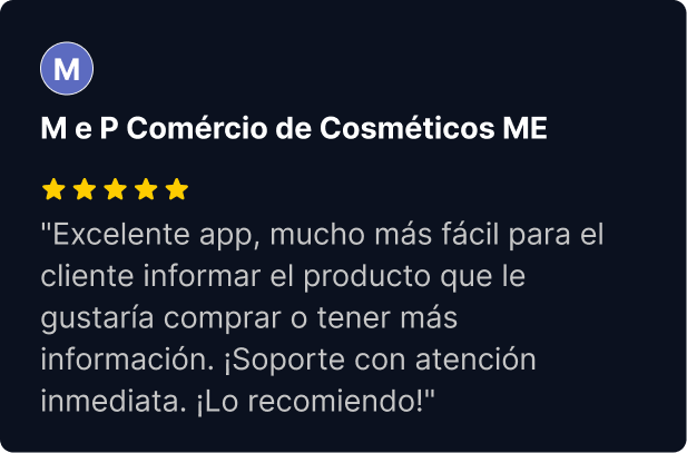 Botón Zap sirve para facilitar la comunicación con tu cliente. Al hacer clic en el botón en la página del producto, el cliente iniciará una conversación contigo enviando automáticamente el enlace del producto. Es una forma simple, directa y eficiente.